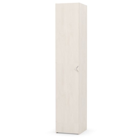 Одностворчатый распашной шкаф с пятью полками и глухой дверью цвета шёлковый камень на четырех шарнирных петлях. Металлические ручки цвета никель приятны тактильно и удобны при открывании фасадов.