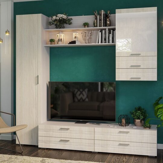 Модульная гостиная Амелия – современная гостиная в светлых тонах. Большой выбор модулей позволит воплотить Ваши представления о гостиной.