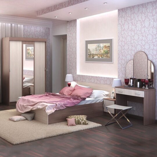 Комплект мебели для спальни Бася  наполнит комнату уютом и теплом, сделав ее самой любимой комнатой в доме. Функциональные элементы, входящие в состав, позволяют создать удобную обстановку. При желании комплект можно дополнить другими элементами серии. Лаконичный гарнитур для оформления современной спальни принесет особое настроения в ваш дом. Спальный гарнитур выгодно подчеркнет обстановку, подарив ей нотки роскоши и уюта. Великолепно подобранное сочетание модулей  принесет в абсолютно каждый интерьер функциональность и изысканность. Классическое исполнение спального гарнитура , выполненного в сочетании контрастных оттенков, понравится любителям простых форм в оформлении интерьера. Комплект гармонично сочетает в себе все необходимые элементы для создания уютной и удобной обстановки в спальне.