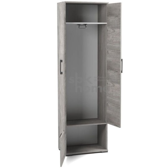 Внутри шкафа вверху полка и выдвижная штанга для вешалок. Дополнительно комплектуется полками Д-2(доп) из этой коллекции.