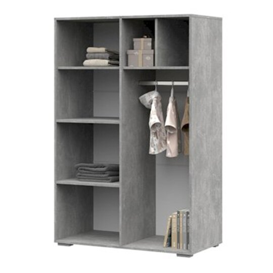 Не высокий и универсальный шкаф-шк03 Денвер за счет большого количества полок предоставляет обширную зону для хранения вещей и при этом экономит место в помещении. Объединяет в себе стеллаж и платяной шкаф.