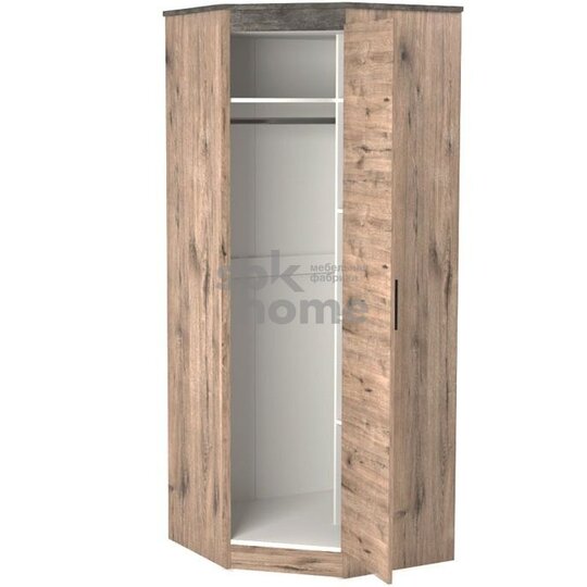В шкафу располагаются полки и штанга для вешалки. Открывание двери (влево или вправо) определяется при сборке. Дополнительно левая часть шкафа комплектуется полками из этой коллекции. Угловой шкаф не только практичен наполнением, с его помощью можно составить угловую секцию шкафов. Полноценная система хранения станет незаменимой для вас.