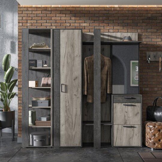 Ширина мм:1002 Высота мм:2000 Глубина мм:500 Цвет:железный камень/крафт серый Материал корпуса:ЛДСП Материал фасадов:ЛДСП Гарантия:12 месяцев Бренд:СтендМебель
