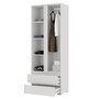 Шкаф двухстворчатый с ящиками предназначен для организации хранения вещей, белья и одежды в спальне или детской. Конструкция шкафа оснащена секцией с полками, отделом для вешалок с одеждой и двумя выдвижными ящиками для белья или коробок.