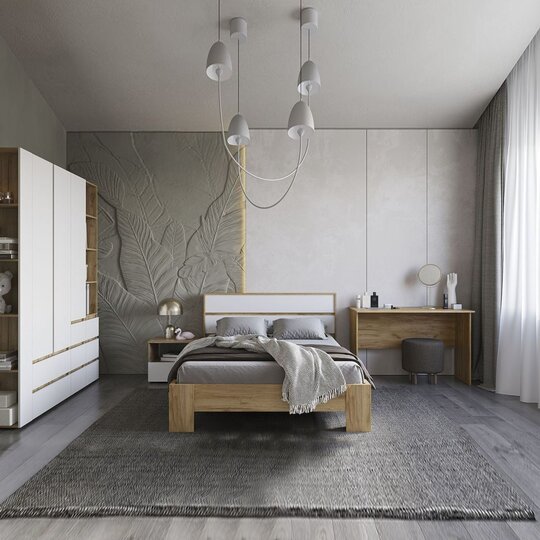 Шкаф угловой предназначен для организации хранения вещей, белья и одежды и найдет свое применение в спальне или детской. Благодаря угловой конструкции он позволит эргономично использовать площадь комнаты. В его состав входит вместительная платяная секция с металлической штангой для одежных вешалок и пять глубоких полок, расположенных одна над другой.