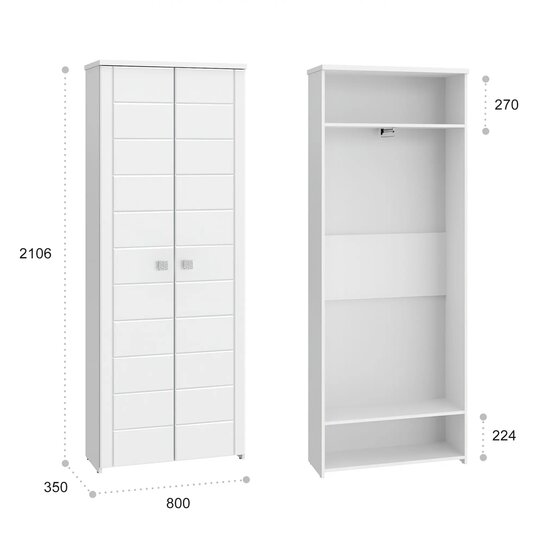 • размер Ш*В*Г/мм/: 800*2106*350.