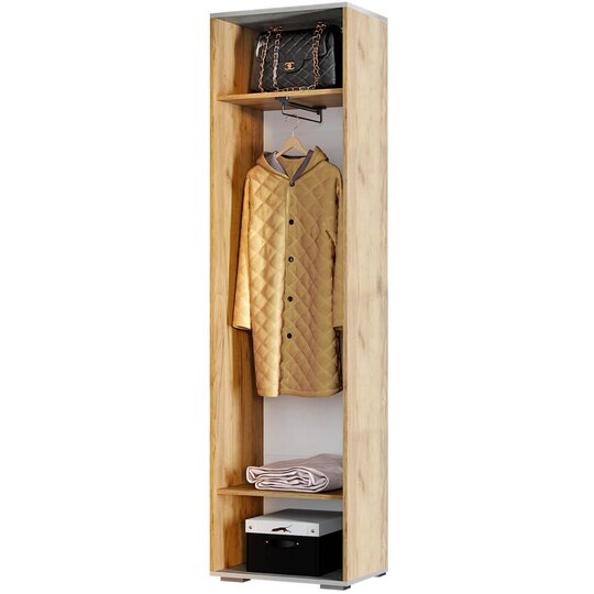 Шкаф с распашной дверцей Кензо – отличный выбор для современного интерьера, особенно в стиле лофт. Модель выполнена из ЛДСП в цвете крафт с контрастной вставкой цвета метрополитан грей, комплектация представляет собой отделение с выдвижной штангой для одежды на вешалках и полок для вещей и аксессуаров. Правильный выбор по лучшей цене — это шкаф Кензо в компании «Семья Мебелони».