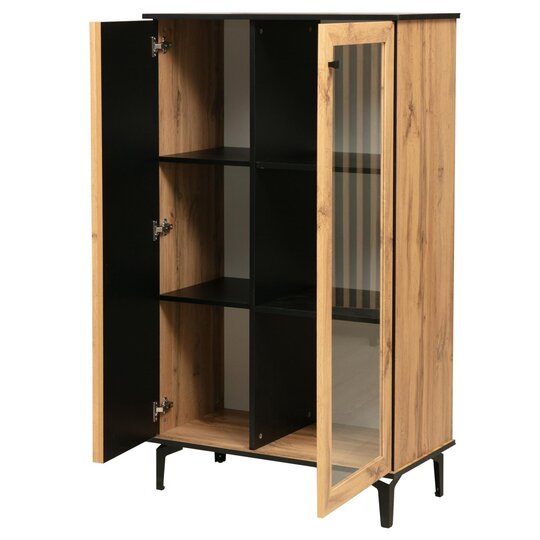 Ширина мм:820 Высота мм:1300 Глубина мм:429 Цвет:дуб вотан/черный Материал корпуса:ЛДСП Материал фасадов:ЛДСП Гарантия:12 месяцев Бренд:Олмеко