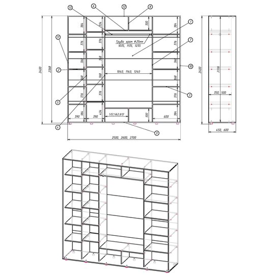 • Дополнительно можно заказать карниз с подсветкой, угловую консоль, полки, штанги, ящики для белья.