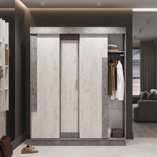 Ширина мм:1598 Высота мм:2100 Глубина мм:520 Цвет:дуб крафт белый/ателье светлый Материал корпуса:ЛДСП Материал фасадов:ЛДСП Гарантия:12 месяцев Бренд:СтендМебель