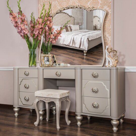 Интерьерная неоклассика — это адаптация классического стиля к реалиям городской квартиры. Все решения, характерные для неоклассики, даются в облегченном виде, с более простыми фактурами, формами и материалами. Мебельная Фабрика Эра представляет вашему вниманию новинку в стиле Венецианская неоклассика-спальня Лали. Романтичная кровать с лёгким филигранным цветочным орнаментом в изголовье подарит романтичное настроение, а мягкая вставка уютного велюра с лазерным тиснением подтвердит новшество прогресса.