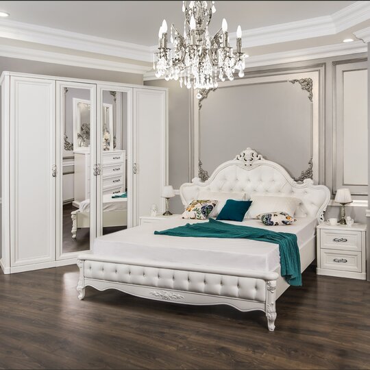 • Стиль – неоклассика (модное сейчас направление в дизайне), эта спальня подойдет к любому интерьеру;