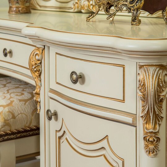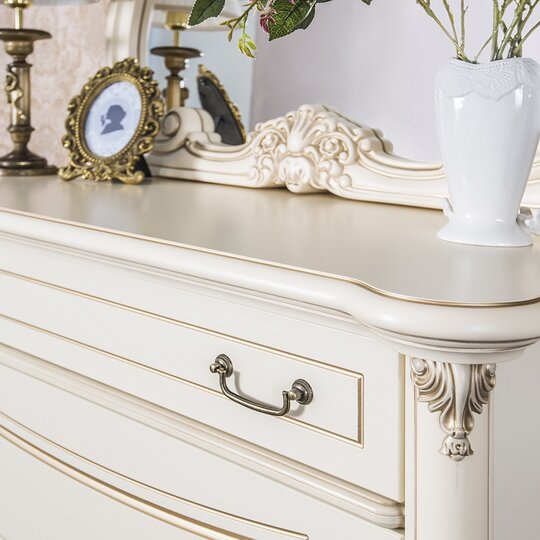 Спальня Мона Лиза - яркий пример роскошной классической спальни. Белоснежное исполнение всех элементов сделает комнату яркой и будет прекрасно смотреться в разных вариациях оформления интерьера. Особенно благородно мебель выглядит благодаря мягким и плавным линиям.