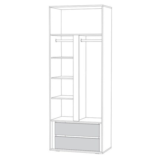 Современный минималистичный шкаф из коллекции Муссон. За закрытыми глухими фасадами скрываются два выдвижных ящика полного выдвижения на шариковых направляющих. На внутренней стороне фасада расположено зеркало, что позволяет убедиться в безупречности своего образа.