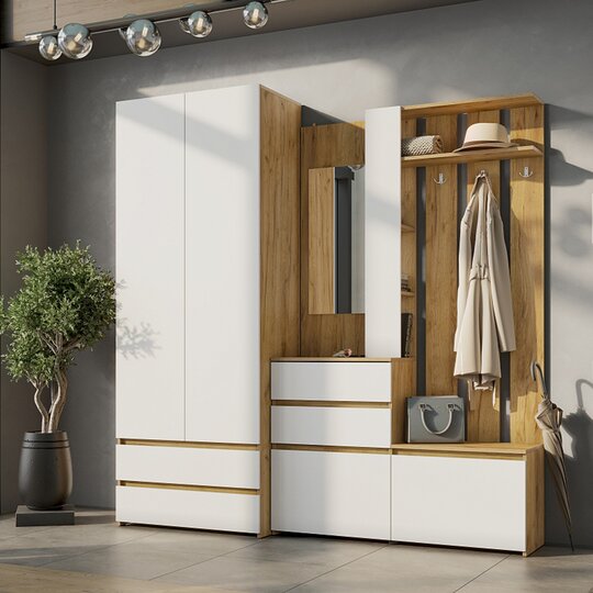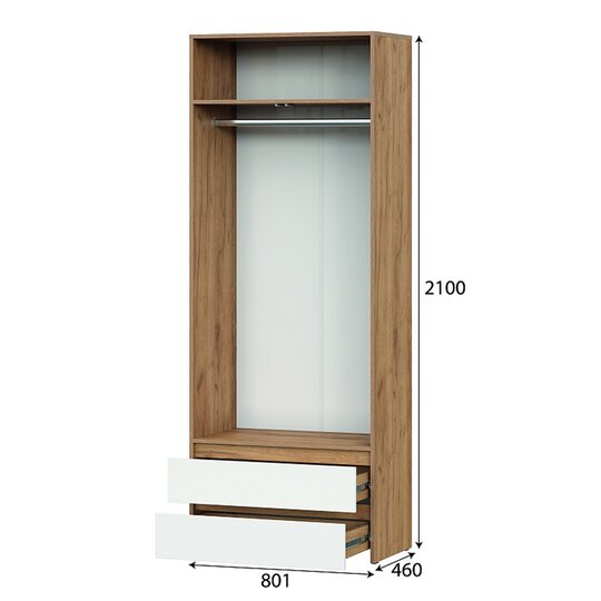 Ширина мм:801 Высота мм:2100 Глубина мм:460 Цвет:Дуб золотой/белый Материал корпуса:ЛДСП Материал фасадов:ЛДСП Бренд:NN-Мебель