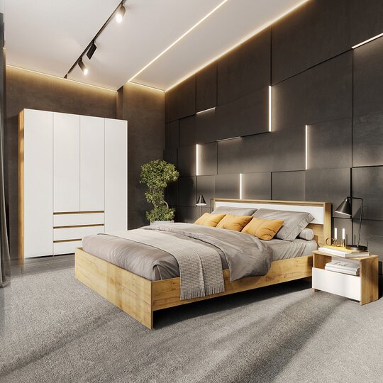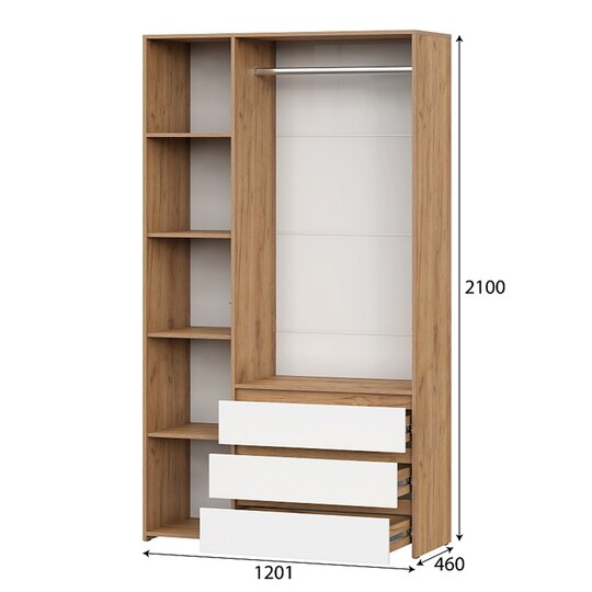 Ширина мм:1201 Высота мм:2100 Глубина мм:460 Цвет:Дуб золотой/белый Материал корпуса:ЛДСП Материал фасадов:ЛДСП Бренд:NN-Мебель