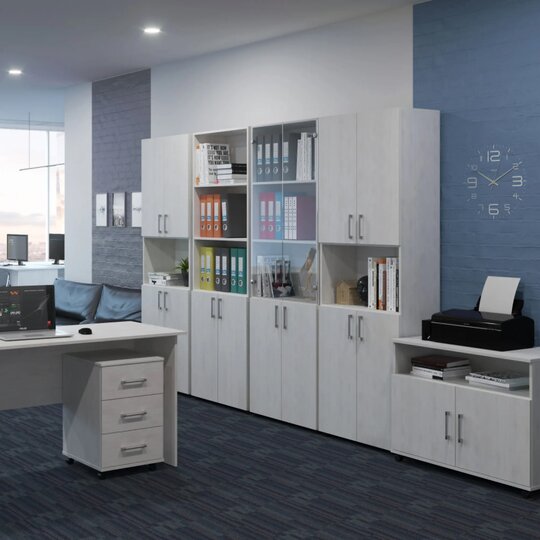 Мебель для офиса изготавливается из качественных материалов, что позволяет использовать ее в помещениях с большой активностью людей: больших административных помещениях, банках и зоне обслуживания клиентов. Коллекция офисной мебели, позволяет компоновать модули между собой — что поможет добиться единого стиля вашего рабочего места. Функциональная и практичная офисная мебель, впишется в любой интерьер, а также создаст атмосферу для плодотворного труда вашего коллектива. Шкаф полуоткрытый ОФ-301К на 5 полок из коллекции "Офис" предназначен для хранения папок класса «Корона» — высокий, удобный и вместительный. Фурнитура: петли с доводчиками. Идеально подойдет под любые помещения и дизайнерские проекты. Выполнен в двух цветовых решениях.