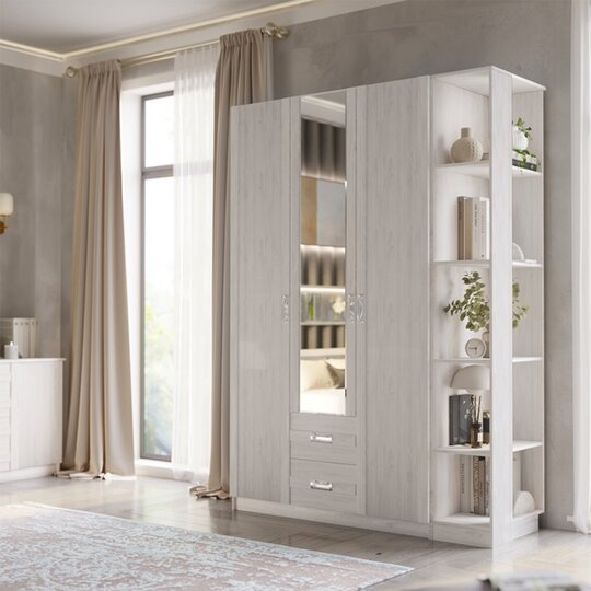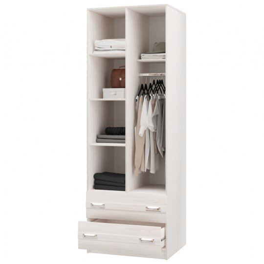 Шкаф ПШ-5 Сабрина-2 Росток при своем компактном размере (шириной всего 800мм) по-настоящему функциональное изделие, поскольку он оснащен и полками, и штангой, и выдвижными ящиками для хранения одежды и белья. Шкаф без зеркала.