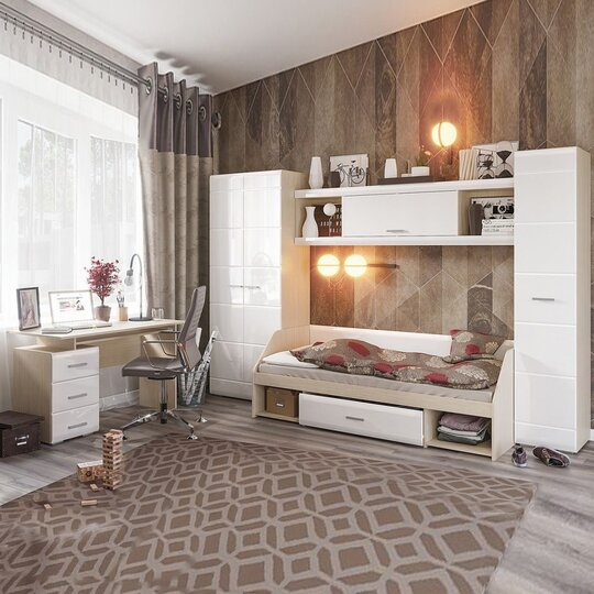 Детская модульная Симба в современном стиле от фабрики Стенд-мебель. Разнообразие элементов набора позволяет удовлетворить пожелания самых взыскательных покупателей. Создана для увлеченных, творческих и активных детей. Каждый из них найдет свою любимую деталь для интерьера.