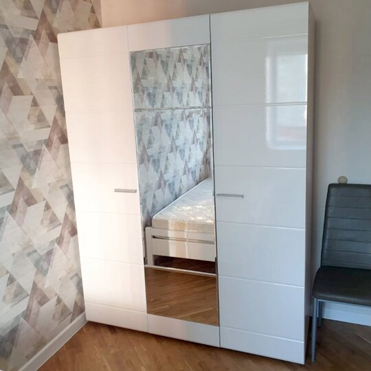 Ширина мм:1500 Высота мм:2000 Глубина мм:570 Цвет:дуб белфорт/белый глянец Материал корпуса:ЛДСП Материал фасадов:МДФ Гарантия:12 месяцев Бренд:СтендМебель