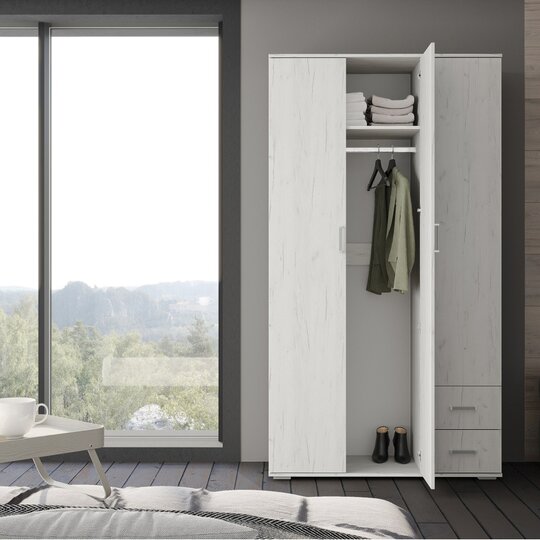 Помимо своей большой функциональности, трехдверный шкаф Соло отлично впишется в любое помещение Вашей квартиры либо дома. За крайней дверцей у шкафа Соло находятся полочки для белья либо других Ваших вещей, под ними размещается два выдвижных ящика. За другими дверцами, помимо верхней полки, имеется штанга для одежды;