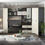 Лаконичная гостиная Яна представляет собой практичное и функциональное пространство. На ней разместятся все необходимые вещи. Данная модель изготовлена в модном контрастном цветовом решении. На ее фасадах красуются элегантные геометрические акценты, которые создают дополнительный комфорт в интерьере.