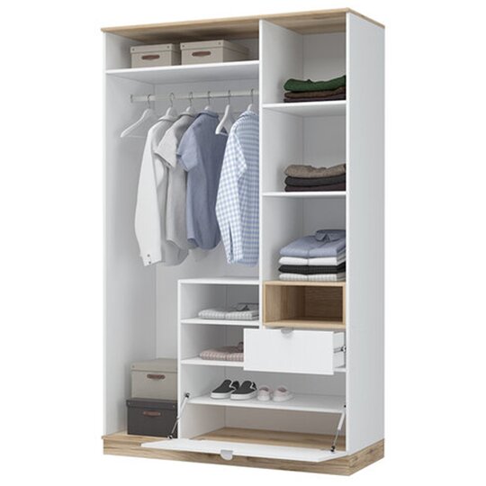 Ширина мм:1350 Высота мм:2200 Глубина мм:550 Цвет:дуб делано/белый Материал корпуса:ЛДСП Материал фасадов:ЛДСП Гарантия:12 месяцев Бренд:СтендМебель