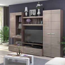Ширина мм:2330 Высота мм:2210 Глубина мм:590 Цвет:Мокко глянец Материал корпуса:ЛДСП Материал фасадов:МДФ с фрезеровкой Гарантия:12 месяцев Бренд:Эра-мебель