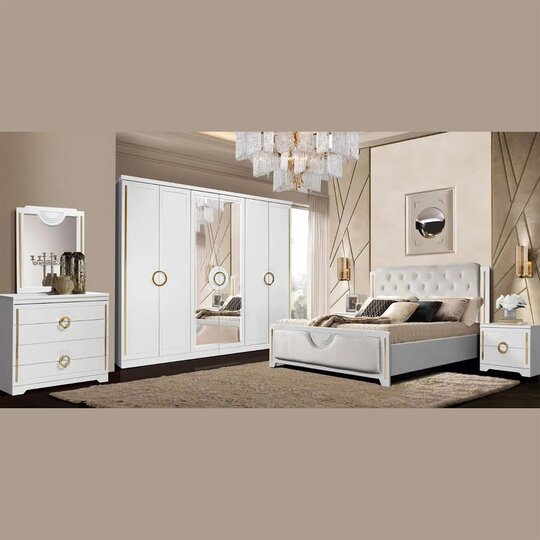 Спальный гарнитур Бодрум по праву считается образцом удачного дизайна, красивой отделки и долговечности. Роскошная двуспальная кровать, изысканные тумбочки, зеркало, вместительный комод для хранения необходимых в спальне вещей и просторный шкаф, - всё это входит в комплект спальни в средиземноморском стиле Стамбул.