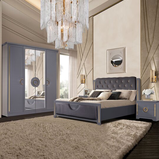 Цвет:серый матовый Спальное место:1800*2000 Материал корпуса:ЛДСП Материал фасадов:МДФ Шкаф:4-створчатый Гарантия:12 месяцев Бренд:Слониммебель