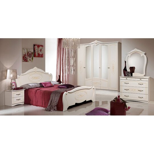 В комплект входит: кровать 1600*2000, тумба прикроватная 2 шт., комод с навесным зеркалом, шкаф 4-дверный. Матрас в цену спальни не входит, менеджер подберет его под Ваши потребности. Посмотреть все матрасы можно здесь.