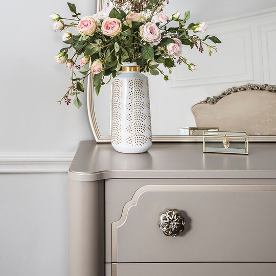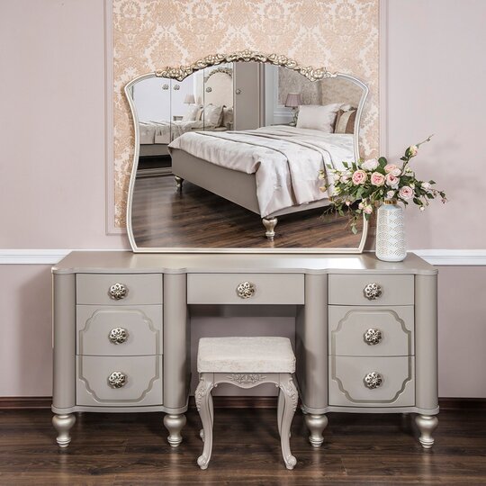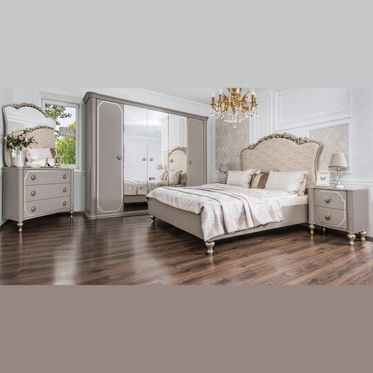 Интерьерная неоклассика — это адаптация классического стиля к реалиям городской квартиры. Все решения, характерные для неоклассики, даются в облегченном виде, с более простыми фактурами, формами и материалами. Мебельная Фабрика Эра представляет вашему вниманию новинку в стиле Венецианская неоклассика-спальня Лали. Романтичная кровать с лёгким филигранным цветочным орнаментом в изголовье подарит романтичное настроение, а мягкая вставка уютного велюра с лазерным тиснением подтвердит новшество прогресса.