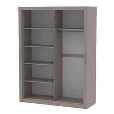 • Функциональные, ведь содержат все необходимое наполнение для комфортного размещения одежды, обуви и даже бытовых предметов. За раздвижной системой зачастую спрятаны штанги для верхней одежды, платье и костюмов, полки для обуви, антресоли и ящики для белья;