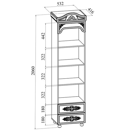 Шикарный стеллаж с тремя полками и двумя выдвижными ящиками. Особый шарм придают уникальные объемные фасады с 3D накладками. Стеллаж АС-43 не только хорошо впишется в интерьер, но и порадует своей надежностью и функциональностью. Фурнитура: телескопические направляющие полного выдвижения. Высота опоры 65 мм.