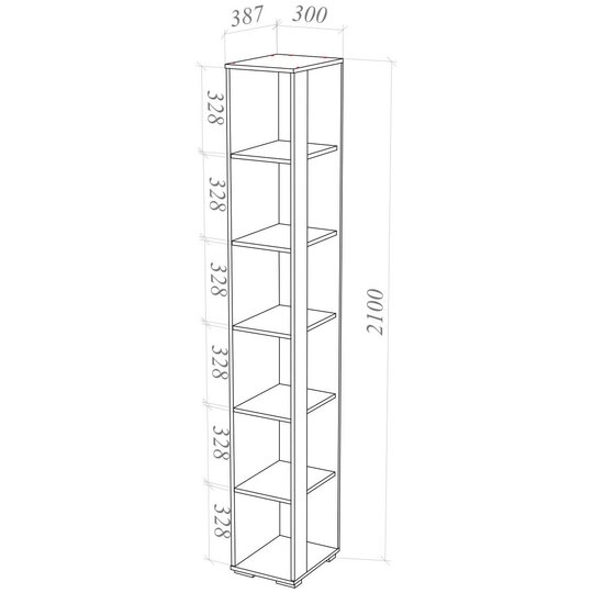 Ширина мм:300 Высота мм:2100 Глубина мм:380 Цвет:дуб сонома Материал корпуса:ЛДСП Гарантия:12 месяцев Бренд:Пирамида