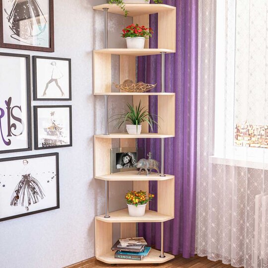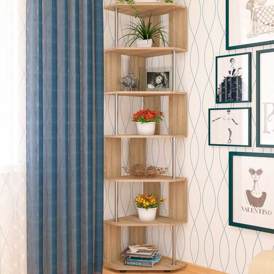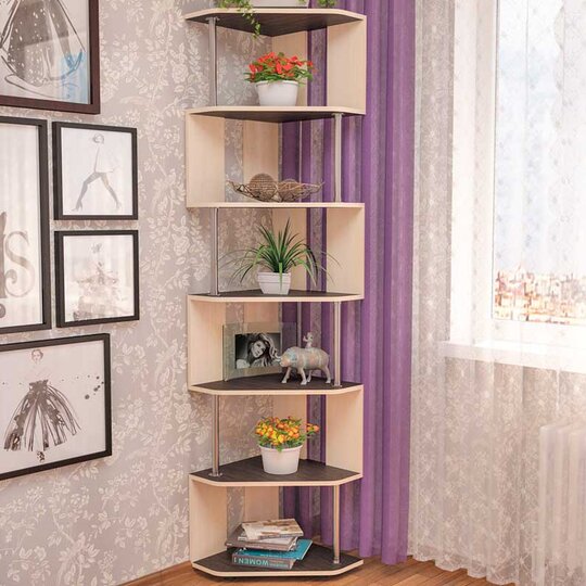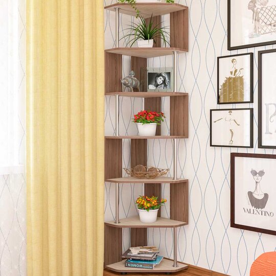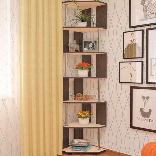 СПУ-3 – оригинальный угловой стеллаж. Оригинальность модели заключается в простоте и элегантности: изделие имеет 7 ярусов, соединённых хромированной трубкой в шахматном порядке. За счёт этого конструкция стеллажа выглядит воздушной, не утяжеляет пространство. Стоит изделие на регулируемых ножках цвета хром. Такой стеллаж будет великолепным практичным дополнением в любом помещении, зрительно увеличивая пространство и делая обстановку более современной.