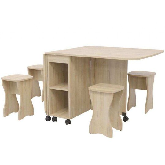 Стол книжка с табуретами 1-6701 идеальная модель для небольшой кухни. За такую компановку фабрике аплодисменты.  Никакого лишнего пространства. Всё максимально удобно. А раскладной стол, позволит собраться большой компании.