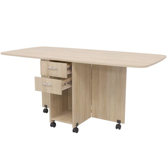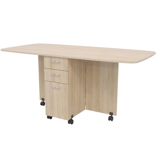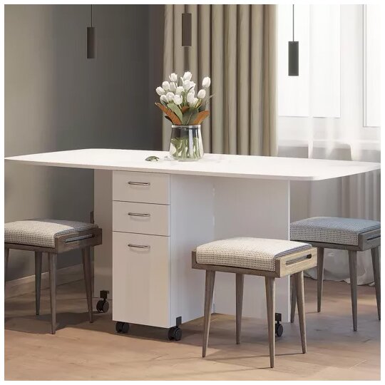 Стол-книжка с ящиками 1-6702 удобная и практичная модель для небольших помещений. В сложенном виде не занимает много места, а в разобранном с радостью разместит всю компанию. Ящики удобны для хранения столовых приборов и мелочей.