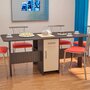 СТ-2 – это традиционный стол-книжка. В разобранном состоянии модель напоминает тумбу. Но благодаря складной конструкции, при необходимости обе створки стола поднимаются и образуют стол более полутора метров в длину. Опора стола имеет конструкцию, позволяющую удобно располагаться с любой стороны стола. Данная модель имеет также множество полок, закрытых от глаз, и ящик для столовых принадлежностей.