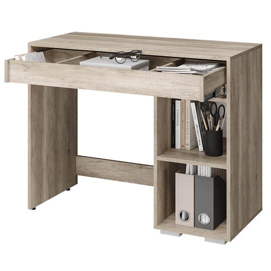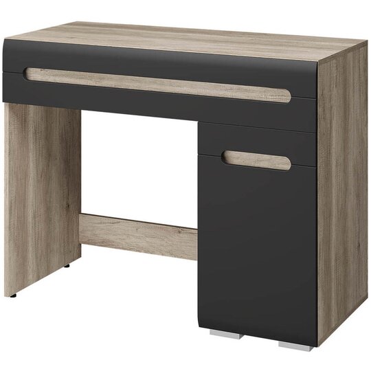 Косметический стол Наоми дополнит любую спальню в современном стиле. Модель состоит из большого выдвижного ящика, разделенного на три секции, и отделения с распашной дверцей, за которой находятся полки, все эти места хранения позволят разместить вам необходимые вещи, косметические средства или украшения, модель Наоми всегда можно дополнить настенным зеркалом из одноимённый коллекции.