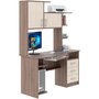 СК-19 - большой, вместительный и очень удобный компьютерный стол для работы и учебы. Здесь и широкая столешница, и обилие шкафов и полок. Так, модель снабжена стационарной тумбой с тремя вместительными выдвижными ящиками и открытой нишей. Рядом под столешницей есть полка для документов. На столе можно установить как стационарный компьютер, так и ноутбук. Для первого случая предусмотрена выкатная тумба для клавиатуры и отдельная ниша под системный блок или же портфель, сумку. Если говорить о верхней части стола, то надстройка содержит различные по вместимости полки, и 2 закрывающихся шкафчика с распашными дверцами. Крыша надстройки позволяет также использовать дополнительную полезную площадь для размещения оргтехники, акустики, папок и любых аксессуаров.
