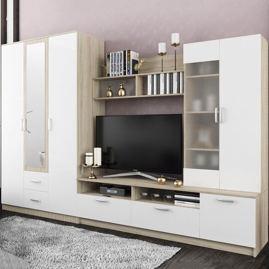 Ширина мм:1100 Высота мм:1380 Глубина мм:450 Цвет:дуб сонома/белый глянец Материал корпуса:ЛДСП Материал фасадов:ЛДСП Гарантия:12 месяцев Бренд:ДСВ