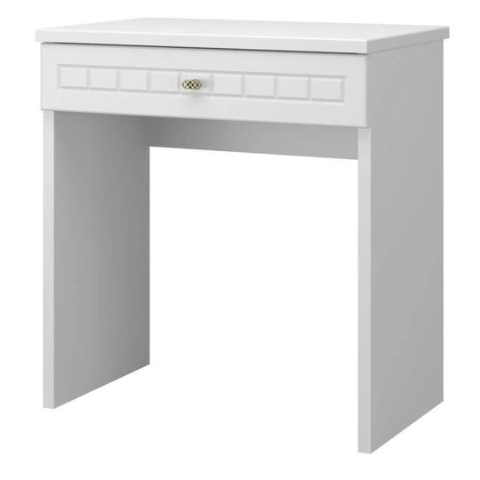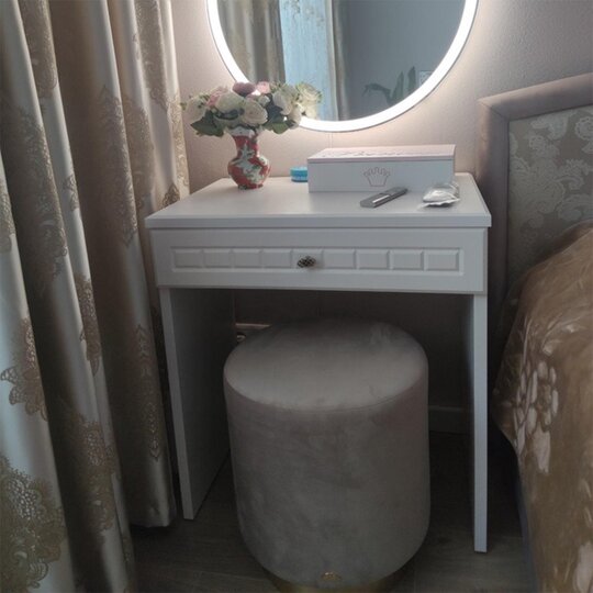 Туалетный столик Монблан МБ-72К станет отличным помощником в создании образа на каждый день. В выдвижном ящике можно хранить косметику и необходимые принадлежности для ухода. Стильный дизайн позволит разместить в любом современной интерьере. Фурнитура: телескопические направляющие полного выдвижения.