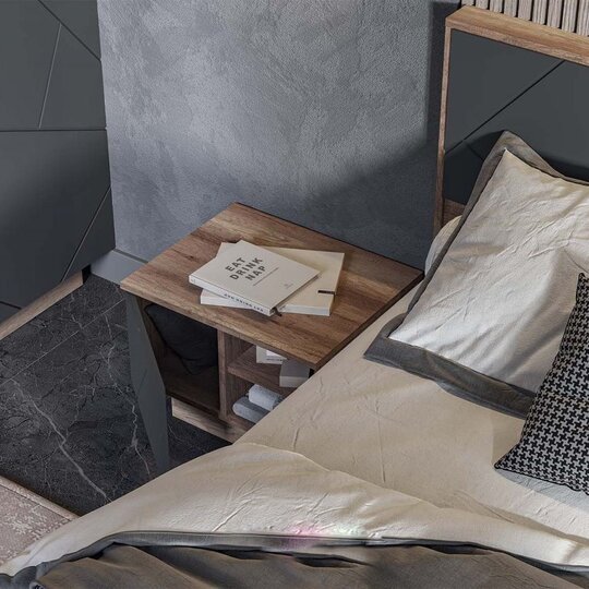 Стол СТ 01 Даллас из одноименной модульной коллекции мебели, благодаря лаконичным расцветкам материала корпуса – ЛДСП Дуб Каньон и фасада выдвижного ящика – МДФ «Титан Силк», может хорошо сочетаться не только с предметами мебели из соответствующего набора, но и с другой мебелью для гостиной комнаты нейтральных цветов. Стол оборудован небольшим выдвижным ящиком и полкой для хранения книг, журналов и необходимых мелочей.