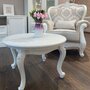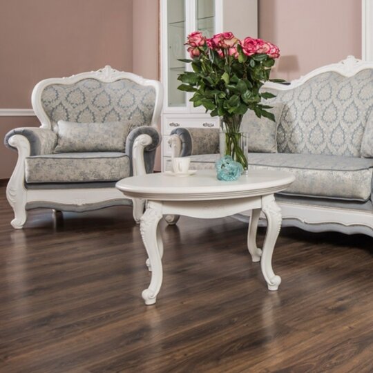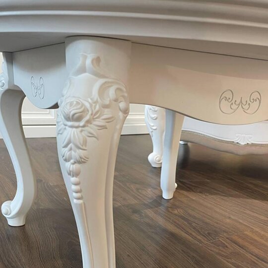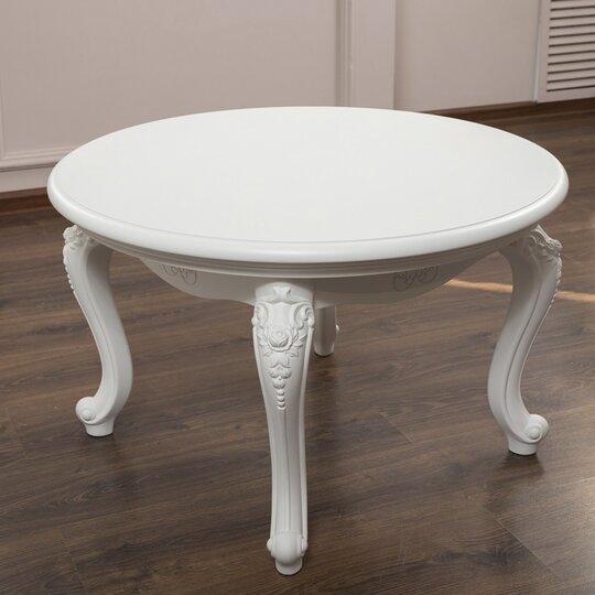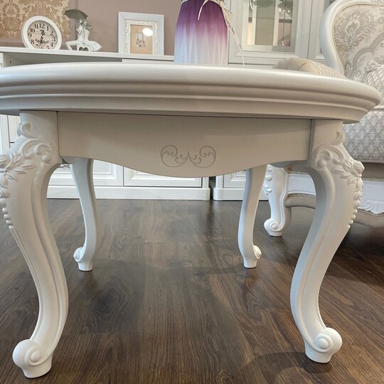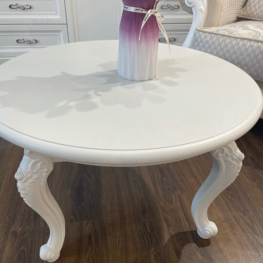 Великолепный журнальный столик с круглой столешницей толщиной 6 см, с фигурной царгой на четырех резных опорах кабриоль, декорированных изысканной цветочной лепниной. Продукция производится в Ставрополе компанией «ЭРА». Пользователю достаточно выбрать в каталоге приглянувшееся изделие, а менеджеры нашей компании отправят его в любой район Крыма бесплатно