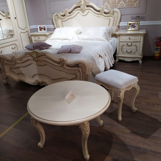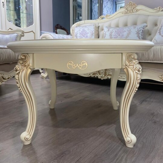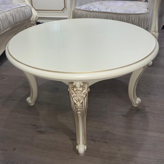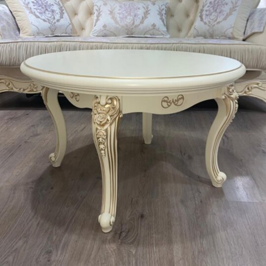 Роскошный круглый столик с резной столешницей толщиной 6см на четырех фигурных опорах, декорированных лепниной, покрытой золотой патиной.Продукция производится в Ставрополе компанией «ЭРА». Пользователю достаточно выбрать в каталоге приглянувшееся изделие, а менеджеры нашей компании отправят его в любой район Крыма бесплатно