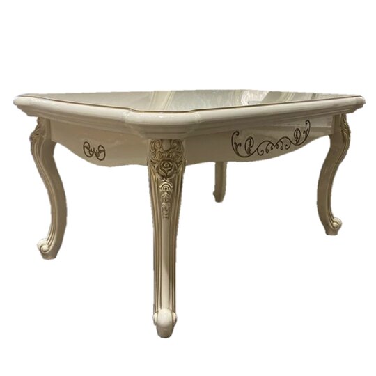 Стол журнальный Джоконда-роскошный прямоугольный столик с фигурной столешницей на четырех резных опорах, декорированных патинированной золотом лепниной. Толщина столешницы-6 см.