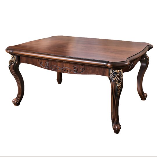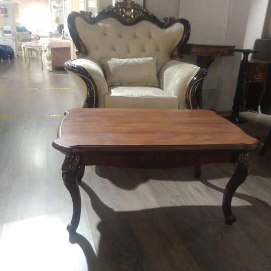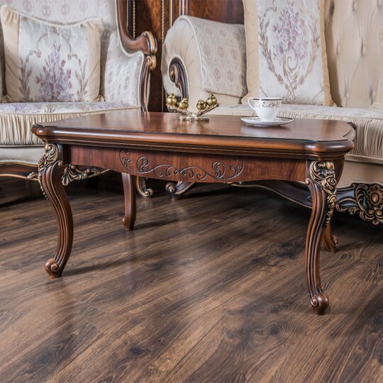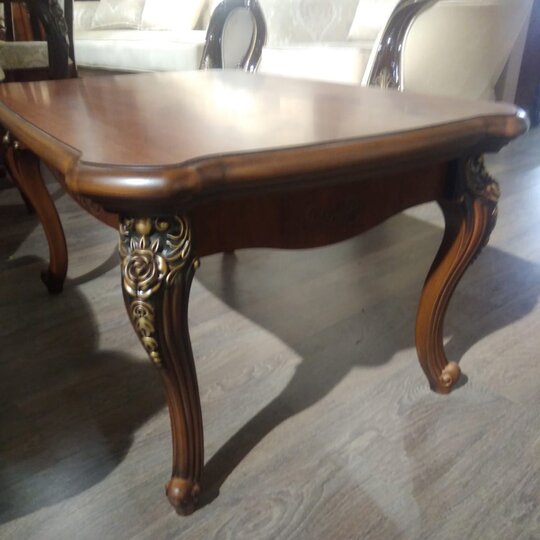 Стол журнальный Илона- это солидный журнальный столик в благородной древесной тонировке с прямоугольной столешницей толщиной 6см на четырех фигурных опорах, декорированных патинированной золотом лепниной. Продукция производится в Ставрополе компанией «ЭРА». Пользователю достаточно выбрать в каталоге приглянувшееся изделие, а менеджеры нашей компании отправят его в любой район Крыма бесплатно