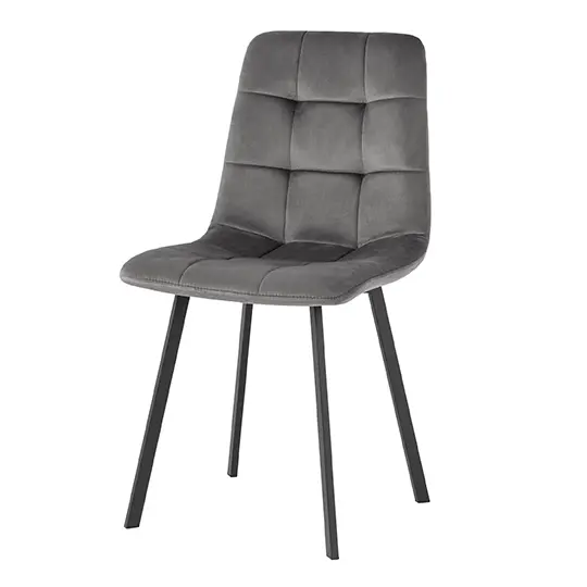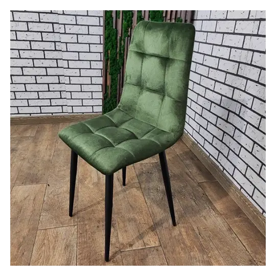Классический обеденный стул без подлокотников на металлических ножках плоской формы. Мягкая обивка выполнена из велюра - прочного, износостойкого и приятного на ощупь материала. Внутренняя сторона сиденья и спинки украшена геометричной строчкой.