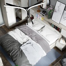 Ширина мм:2050 Высота мм:1755 Глубина мм:1000 Цвет:ясень шимо светлый/темный Спальное место:800*2000 Материал корпуса:ЛДСП Материал фасадов:ЛДСП Гарантия:12 месяцев Бренд:Гранд кволити